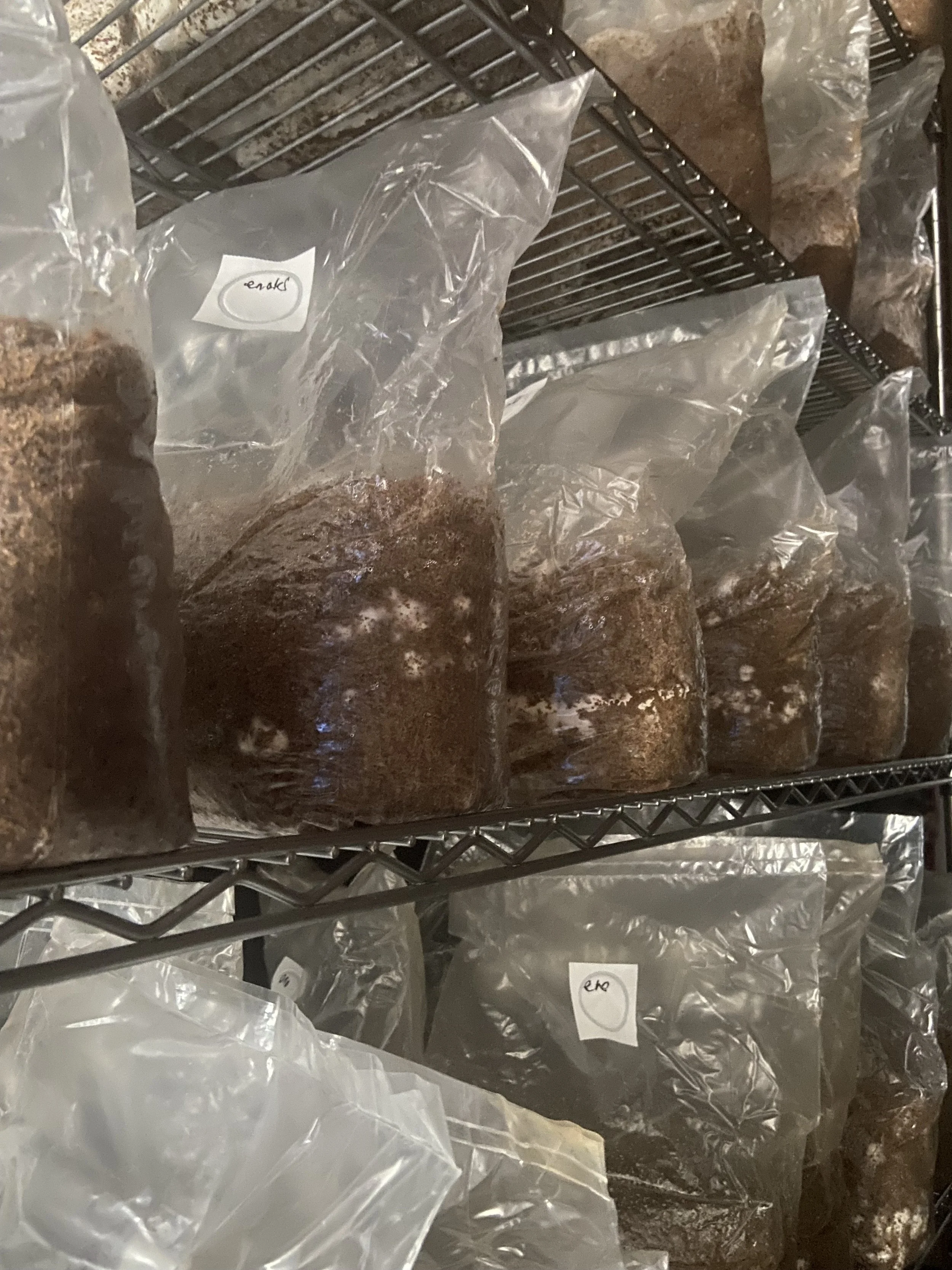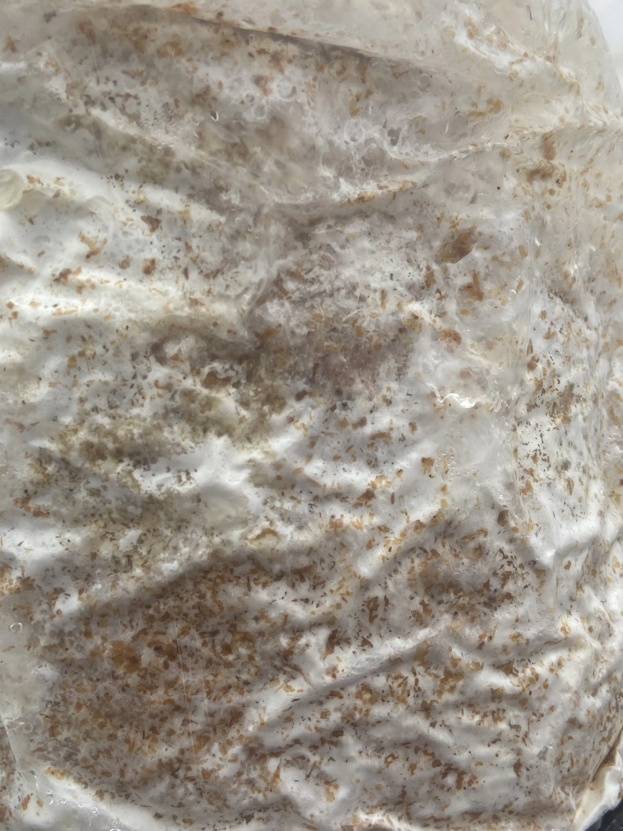 Lion’s Mane is unique among mushrooms because its colonized substrate doesn't always turn fully white, even when it's ready. Unlike other species like oysters, which clearly cover the entire bag in thick white mycelium, Lion’s Mane can look patchy or uneven, with dense white areas mixed with visible substrate. This is normal—Lion’s Mane mycelium tends to grow more internally and in strands rather than forming a thick, fluffy surface layer. So even if the bag doesn’t look completely white, it may still be fully colonized and ready to fruit.